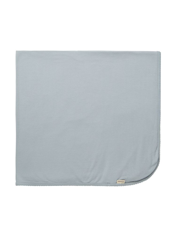 Blue jersey baby blanket, a beautiful gift for newborns that offers gentle swaddling and year round comfort. Crafted from a luxurious jersey knit blend, it stretches softly while keeping baby warm and cozy.