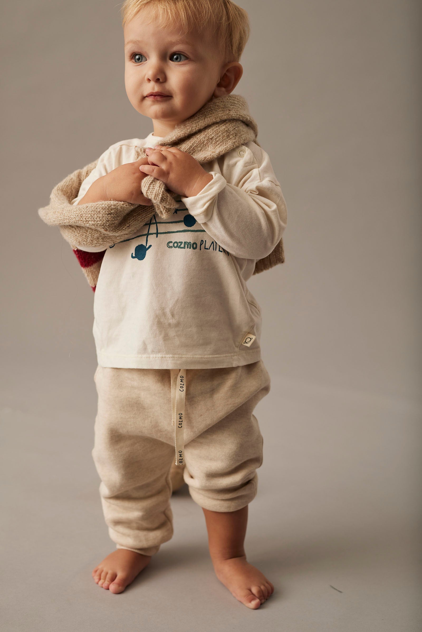 Fleece pants for baby boys and toddler boys in beige, perfect for cozy winter layering and everyday warmth. Made from ultra soft brushed fleece with subtle melange texture, they offer lasting comfort and easy movement on chilly days.