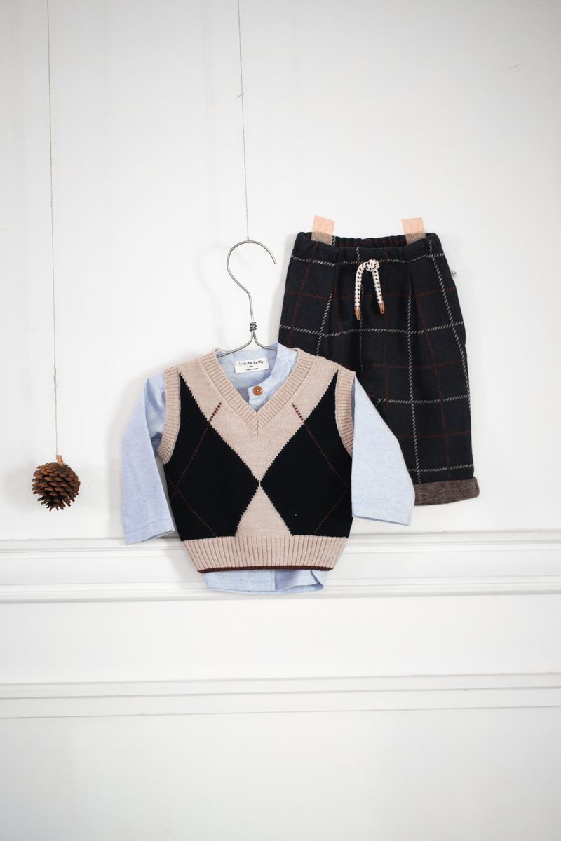 Navy checked fleece pants for baby boys, a cozy fall and winter staple designed for warmth, comfort, and everyday adventures. Crafted from a soft cotton blend fleece, these trousers combine durability, softness, and classic seasonal style.