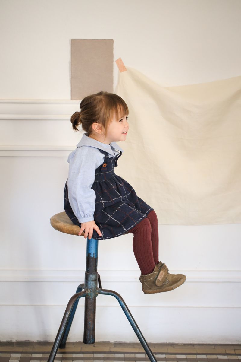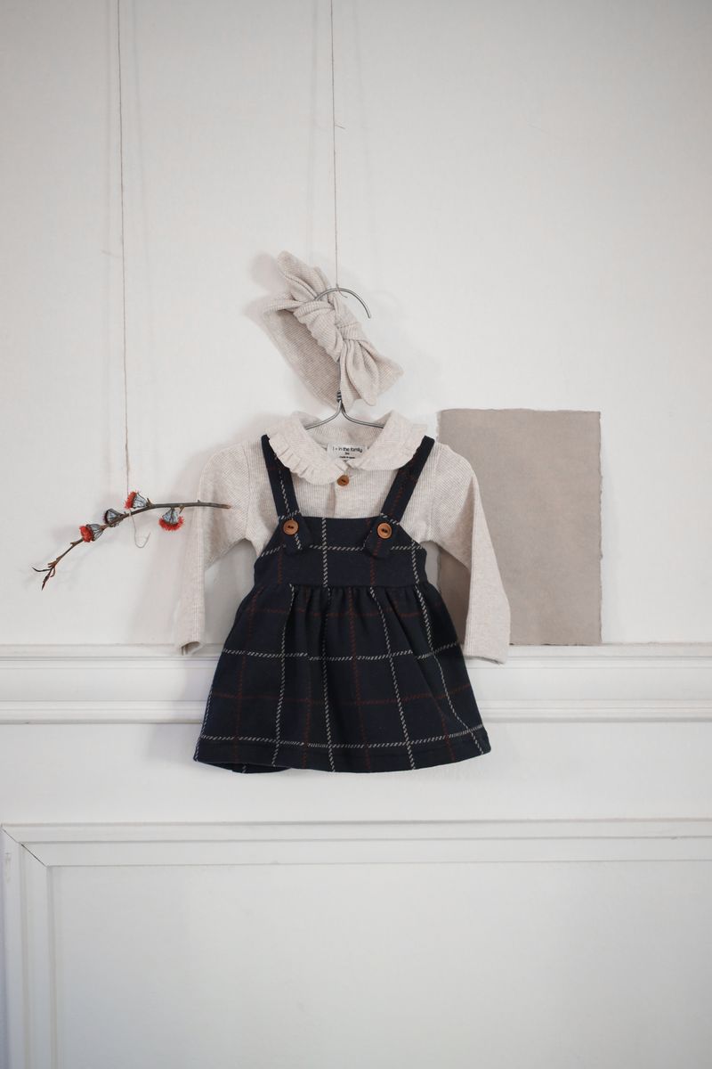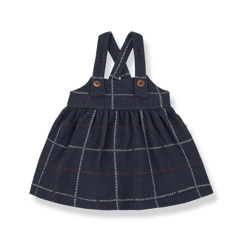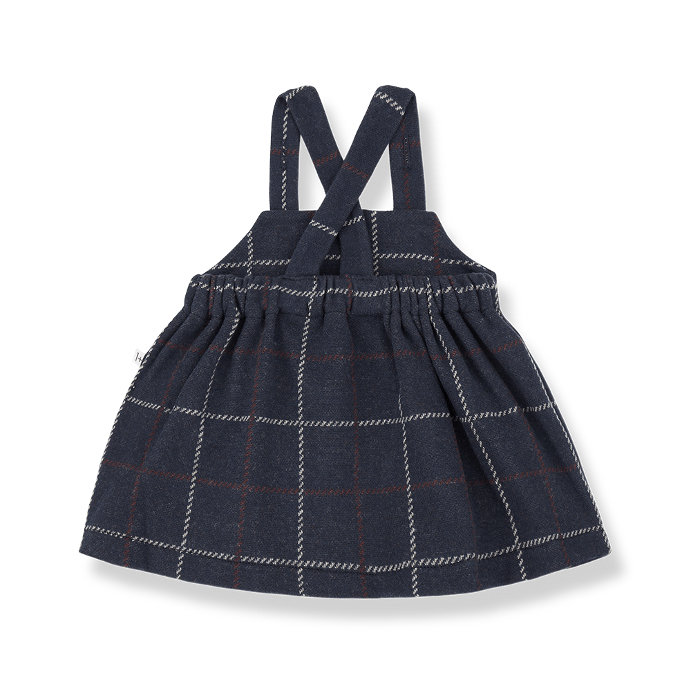 Overall skirt in navy plaid for baby and toddler girls, a timeless piece for festive occasions, family gatherings, and everyday charm. Designed with soft cotton blend fabric and a vintage-inspired silhouette for playful elegance and lasting comfort.