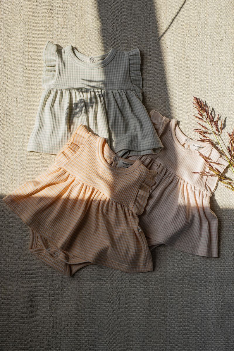 striped ruffle body dress - nude 'dolca' - +1 in the family -