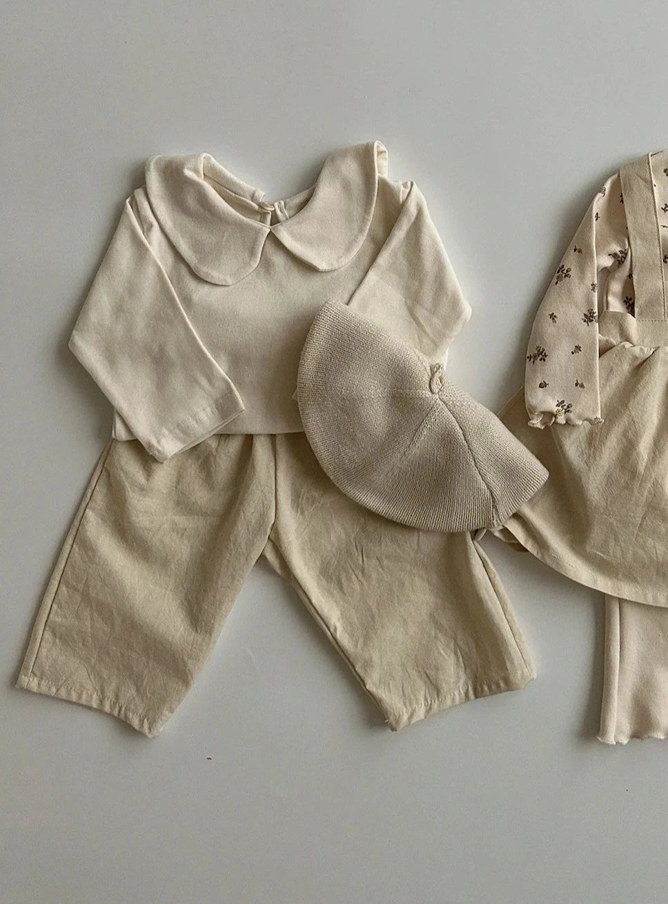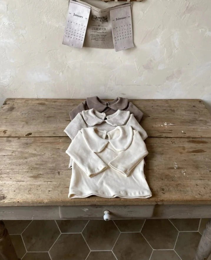 Soft cotton baby t-shirt with rounded front collar, a durable and comfortable everyday essential available in muted neutral tones. Designed for movement, softness, and easy dressing, this tee blends timeless simplicity with thoughtful craftsmanship.