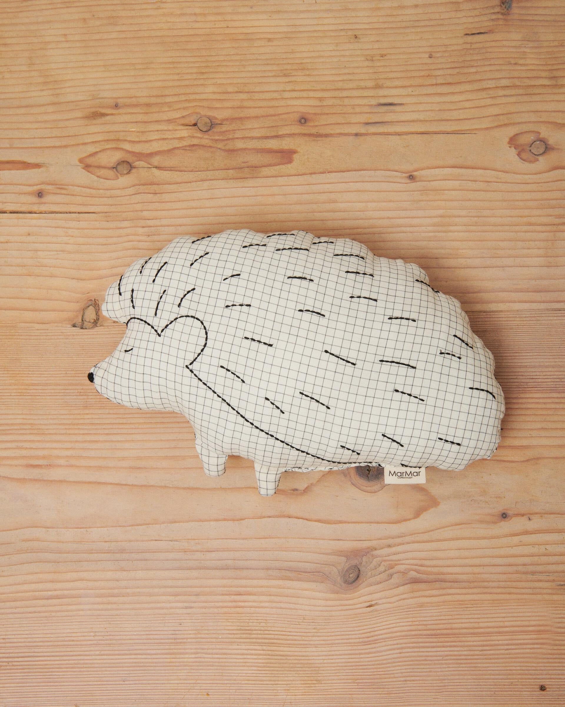 Introduce your little one to comfort and charm with the hedgehog shaped fabric cushion from MarMar Copenhagen, a leading European baby brand. Designed in soft checkered white and black fabric with delicate embroidered details, this plush toy offers a safe and cozy way for babies to explore textures while adding warmth to any nursery or playroom.
