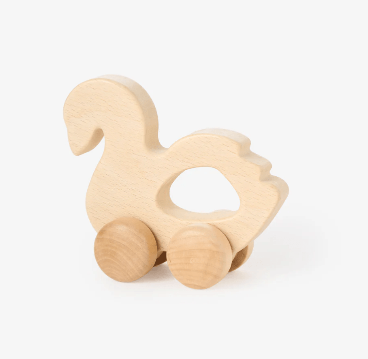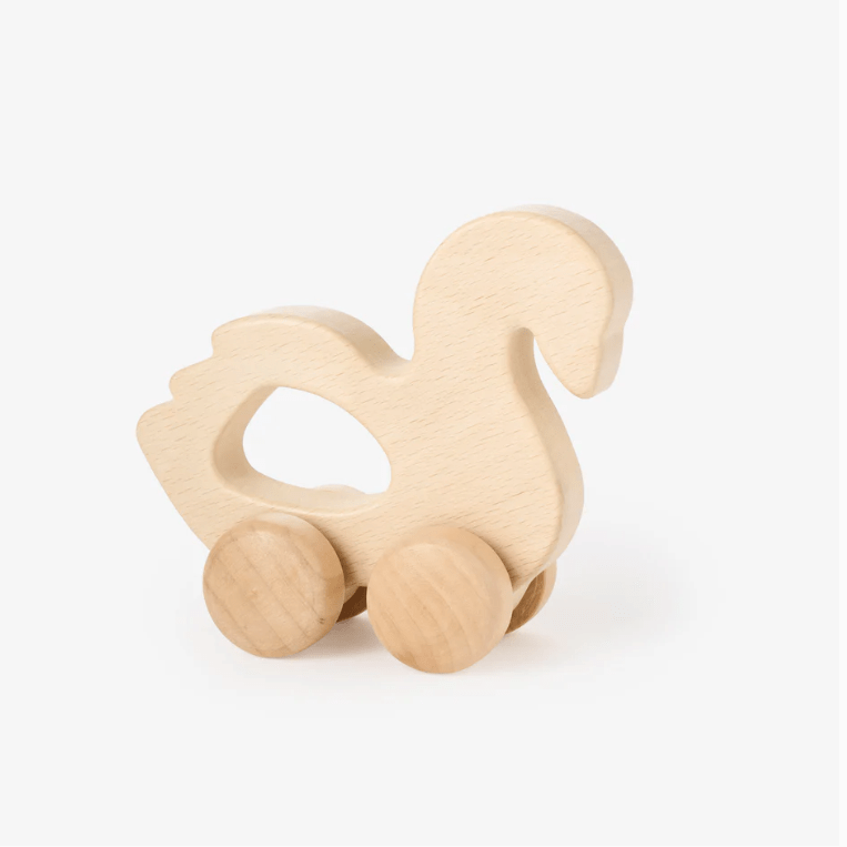 Charming wooden swan push toy, ideal gift for nurturing early motor skills and nursery charm.